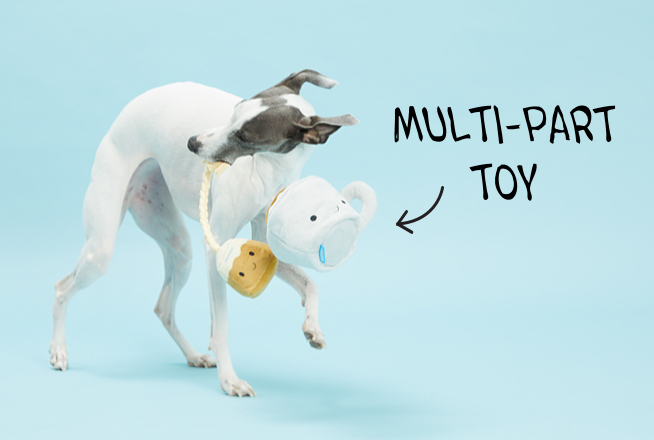 You have an option to choose from the standard BarkBox or the Super Chewer Box filled with tough toys.